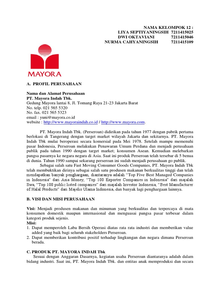 Mayora indah tbk pada bulan desember 2020 diatas, hendaknya secepatnya untuk melengkapi dan menyusun berkas lamaran kerja seperti surat lamaran kerja, cv atau daftar riwayat hidup, fc ijazah dan transkrip dan pelengkap lainnya seperti.